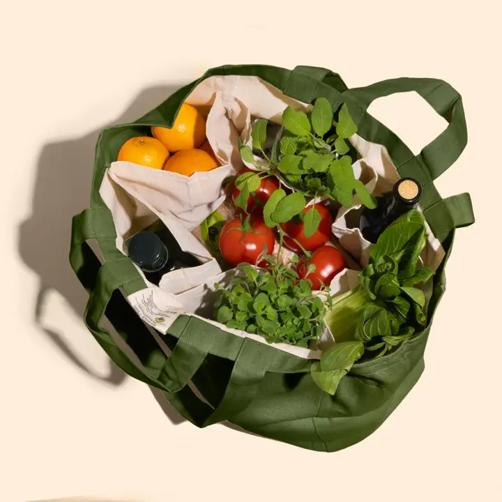 Eliminate single use plastic liners, and reduce plastic waste, while comfortably carrying all your shopping goods, in our beautiful reusable tote bag.