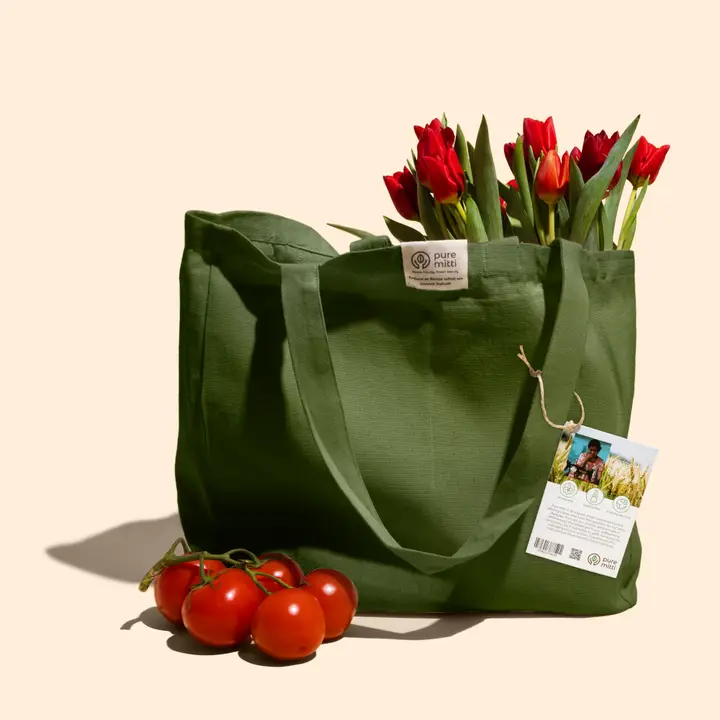 Handmade, Biodegradable Canvas Tote Bag. Made with 100% Natural, Organic-certified cotton.